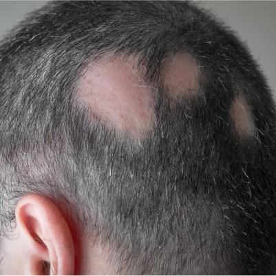 Terapija mu je hitro povrnila privlačen videz: na teh plešastih lisah.
